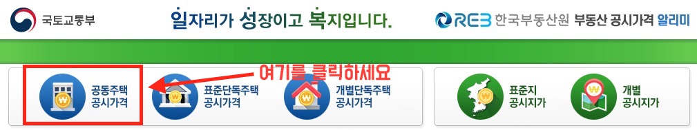 - 메뉴 선택: 메인 페이지에서 '공동주택 공시가격' 메뉴를 선택합니다.