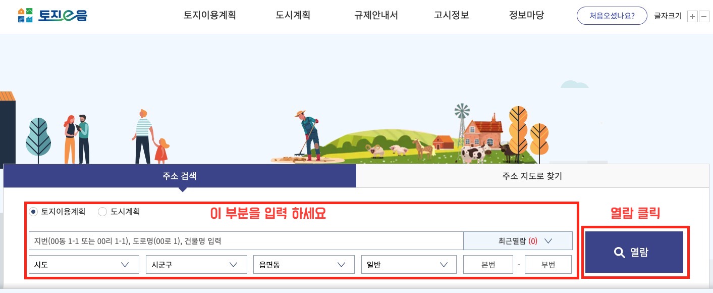 - 접속 및 검색: 토지이음 웹사이트에 접속한 후, 조회하고자 하는 토지의 주소(지번 또는 도로명 주소)를 입력합니다.