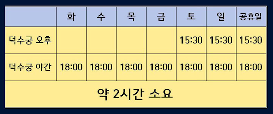 - 휴무일: 매주 월요일 (덕수궁 휴궁일)