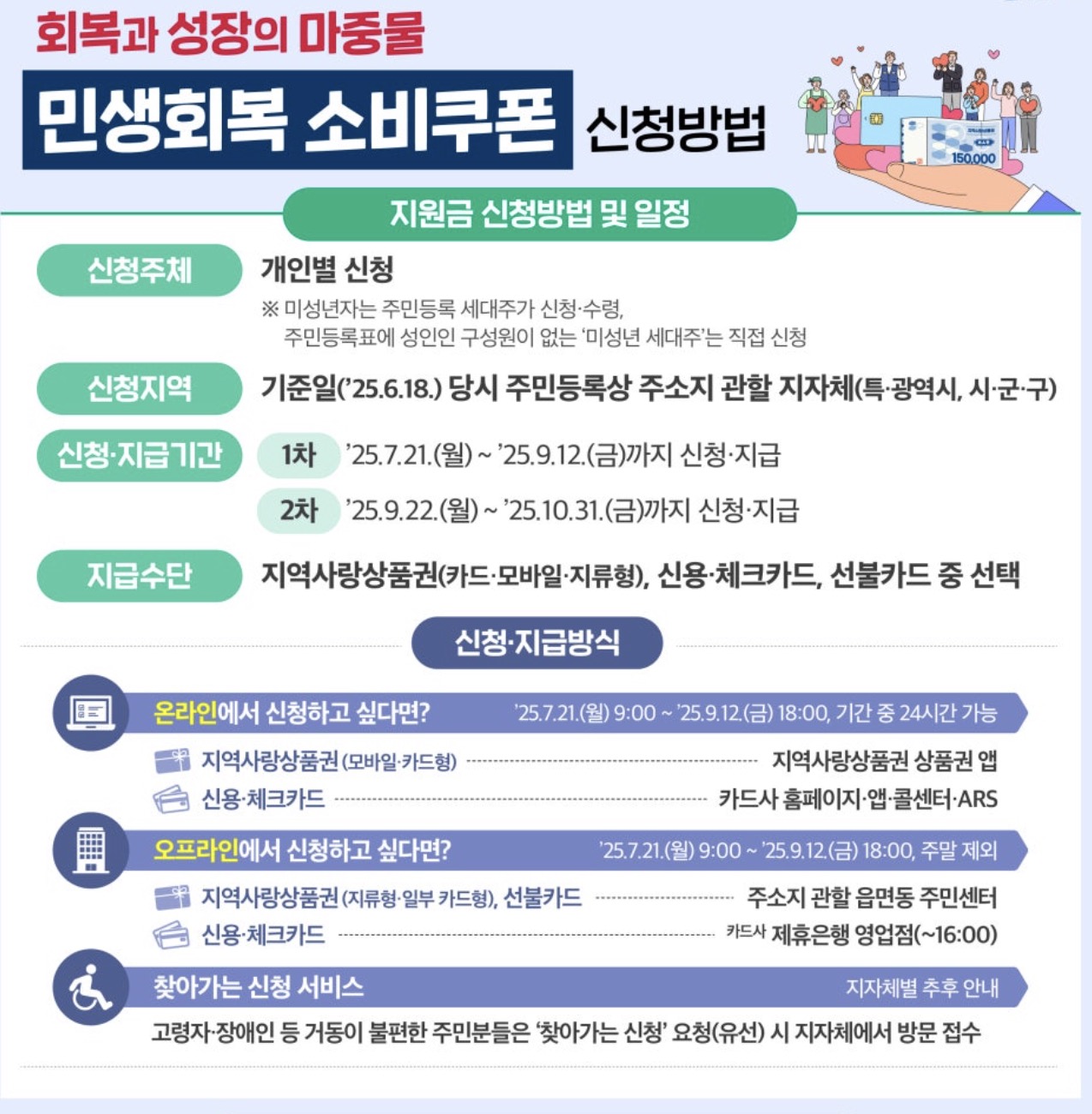 - 1차 신청·지급 기간: 2025년 7월 21일 (월) ~ 9월 12일 (금)