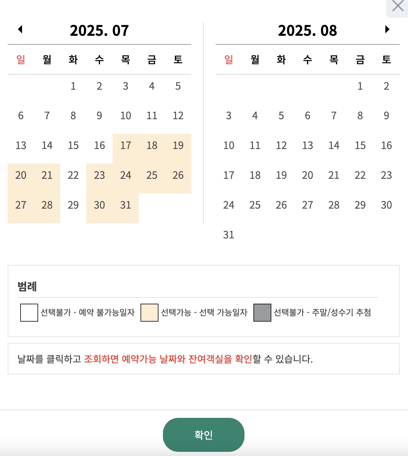 - 예시: 8월 숙박분 예약은 7월 7일 14시부터 예약이 시작됩니다.