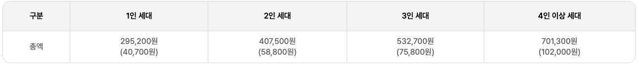 - 1인 세대: 295,200원
