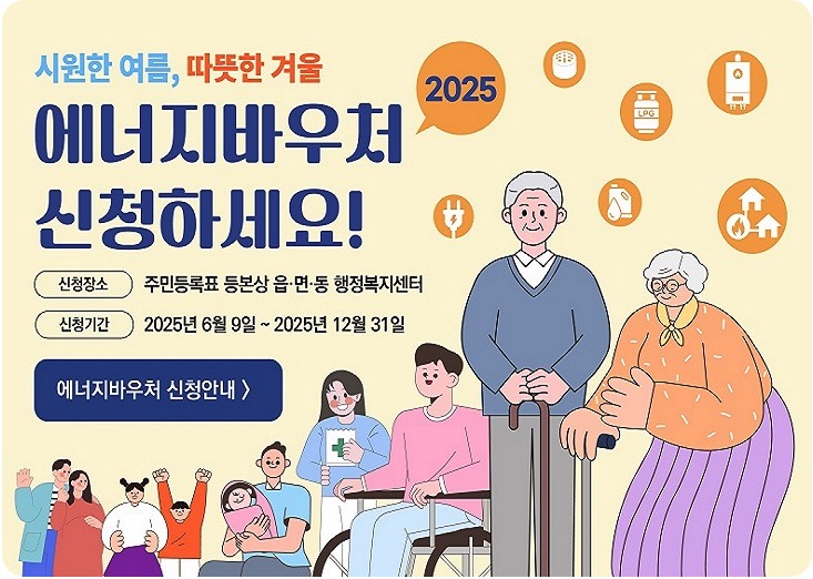 에너지 바우처를 통해 에너지 비용 부담을 덜고, 더욱 따뜻하고 시원한 계절을 보내세요!