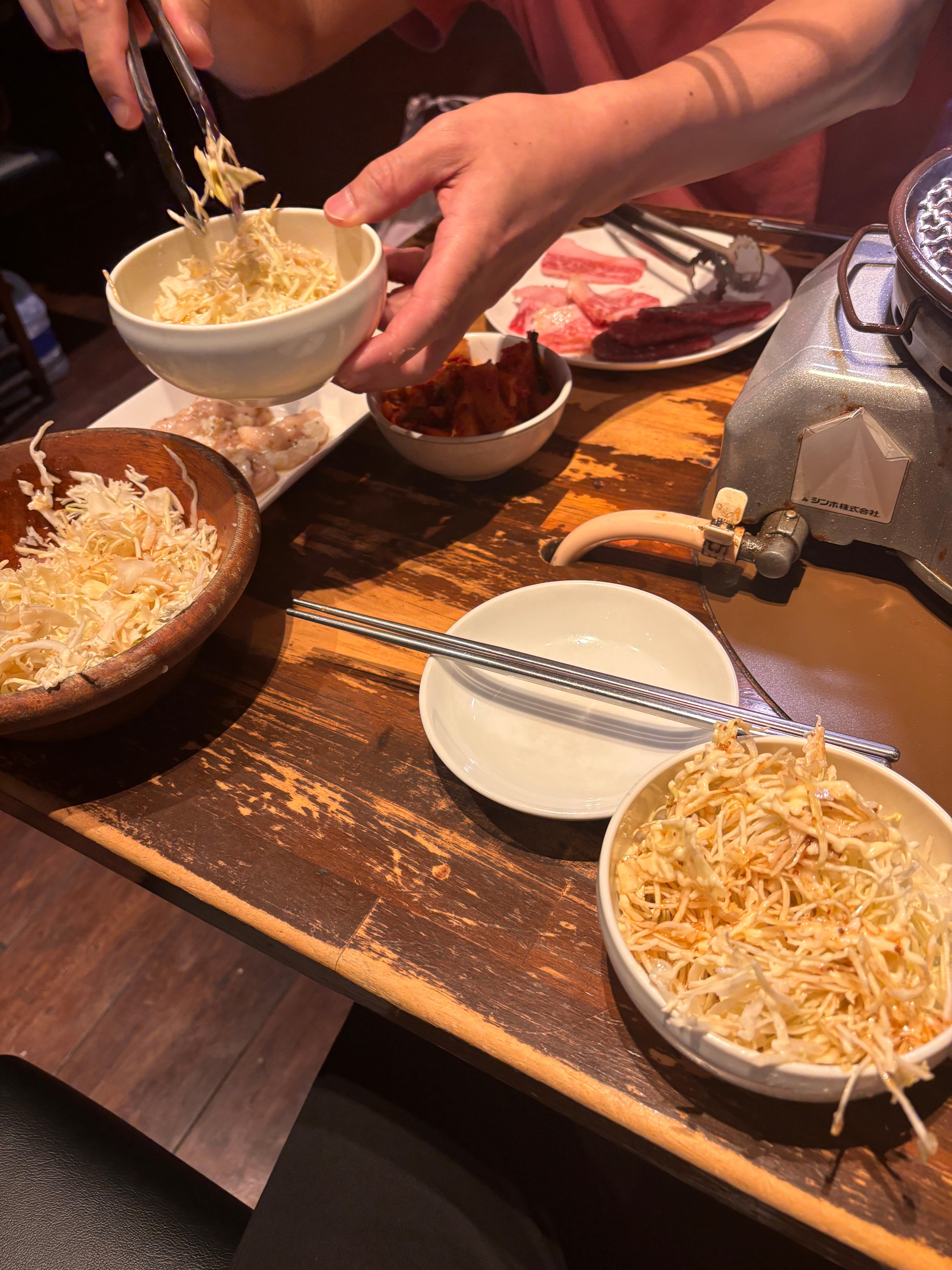일본은 확실히 반찬문화가 없어서 고기만 먹고 주로 양배추를 많이 먹더라구요. 형이 김치도 시켜줬는데 이건 뭐 너무 달아서 김치라고 할수 없는 수준이었습니다. 그리고 정말 어이없는건 냉면이 있다고 해서 시켜줬는데 진짜 아무맛도 안느껴질 정도의 맛이었습니다. 혹시라도 일본 가셔서 야끼니꾸집에서 냉면 있으면 비추천 드립니다.
