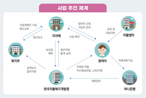 - **서비스 지원:** 한국자활복지개발원에서 대상자에게 매칭 지원금을 지급합니다.